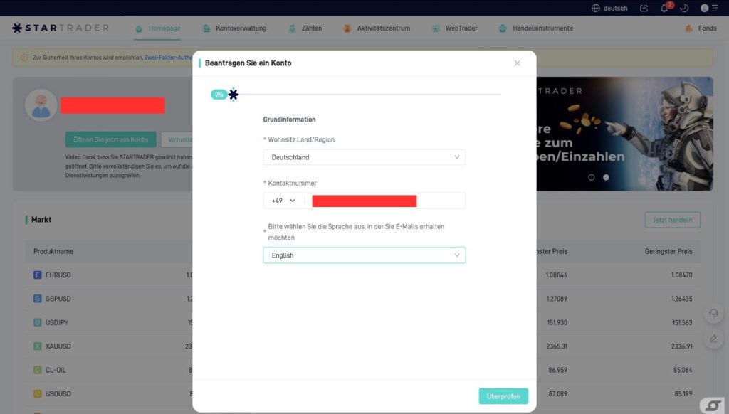 ➡️ Enter your place of residence and telephone number➡️ English must be selected here, as German is not available