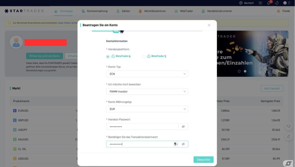 ➡️⚠️Kontotyp: ECN for deposits from €1000